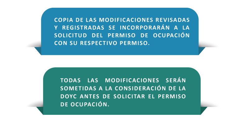 Todo plano que se encuentran en recorrido o que ya haya sido registrado por la DOYC pueden sufrir modificaciones las cuales deberán ser registradas antes de la solicitud permiso de ocupación.